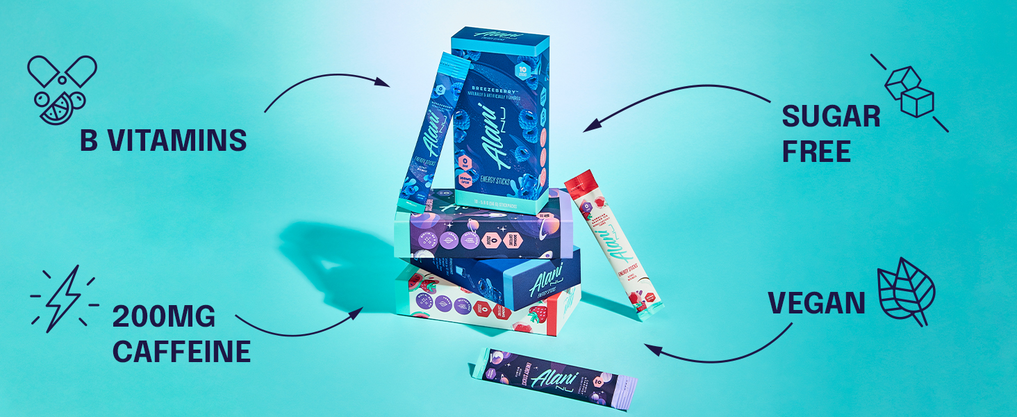 Rethink your energy powder. Alani Nu packs each stick packet with 200mg of caffeine with vitamins B5, B6 and B12 to support functional systems in our bodies and provide natural energy. Biotin is added to provide a natural glow and steady boost of energy all day long. Alani Nu Energy is packed with nutrients you need and none of the fillers you don't